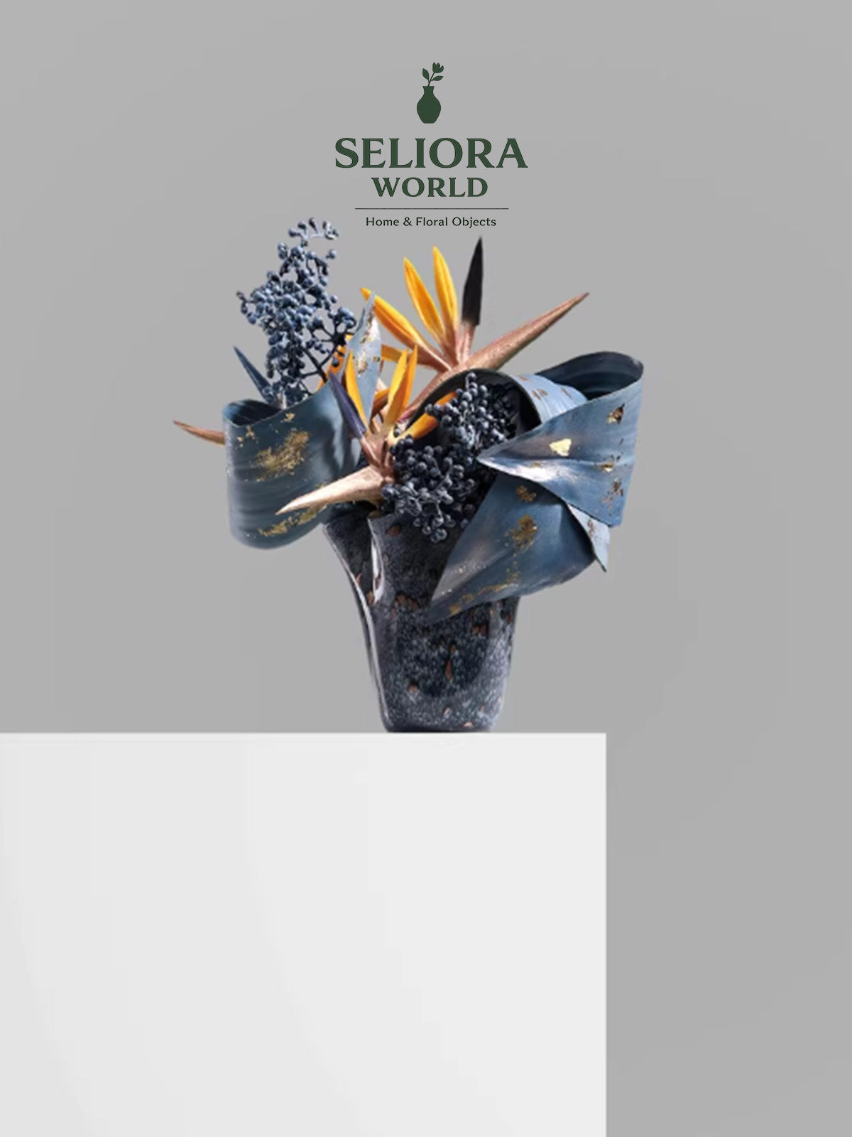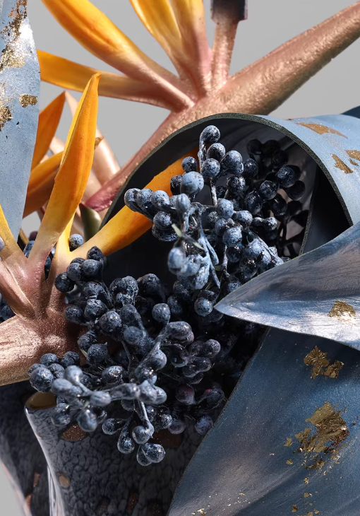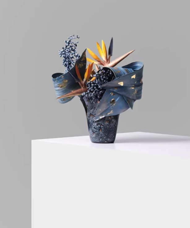 Crafted with high-transparency glass vessels and premium silk florals in layered blue tones. Each stem is hand-positioned to create natural movement and balance.